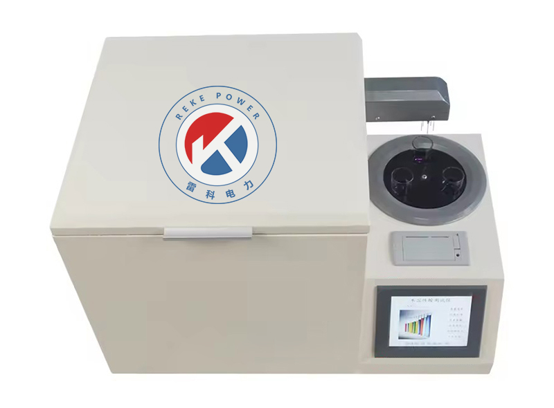 我公司生產的REKE-SR-303A型自動水溶性酸測試儀(比色法)是根據《GB/T7598-2008運行中變壓器油水溶性酸測定法》及相關標準設計制造。采用大屏幕彩色液晶顯示器,利用微處理器控制,可以根據用戶的設定條件自動完成加熱、恒溫、振蕩、取樣、測試、清洗、打印等功能,可以一次性測量1-3個樣品,縮短了用戶的測試時間,提高了工作效率,減輕了工作人員的勞動強度;并支持無線傳輸功能。